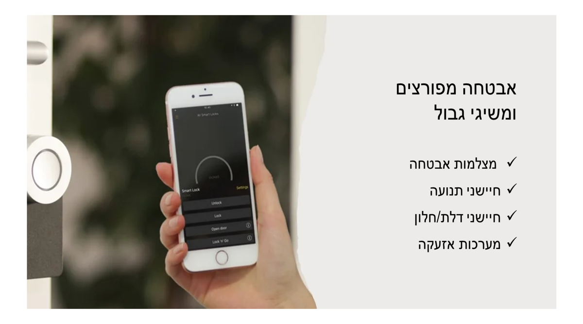 - מצלמות אבטחה ואזעקות