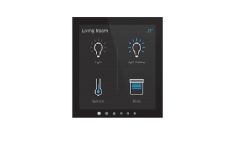 מסך מגע לתצוגה ובקרת חדר רב תכליתית, להדמיה ותפעול של החדר במערכות KNX. משמש עבור תפעול פונקציות שונות בחדר כמו תאורה, תריסים ובקרת טמפרטורת החדר או סצנות המותאמות למשתמש.