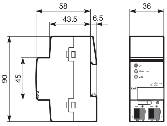 כניסה ויציאה לחיבור קו ראשי של רשת ה-KNX.