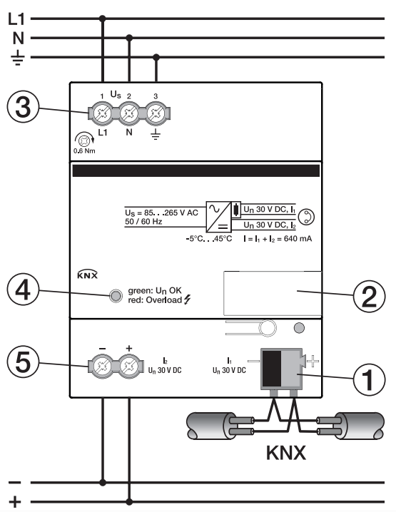 - אבטחה: משנק מובנה המסנן את המידע העובר אל רשת ה-KNX ממקור המתח 220V.